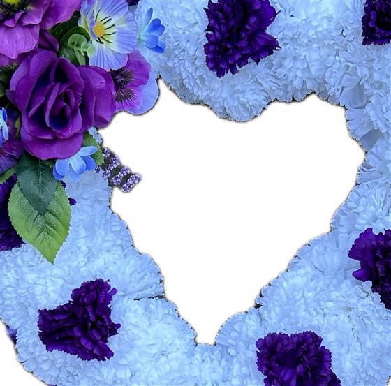 A beautiful open heart tribute available in many colour options created in long lasting forever flowers .